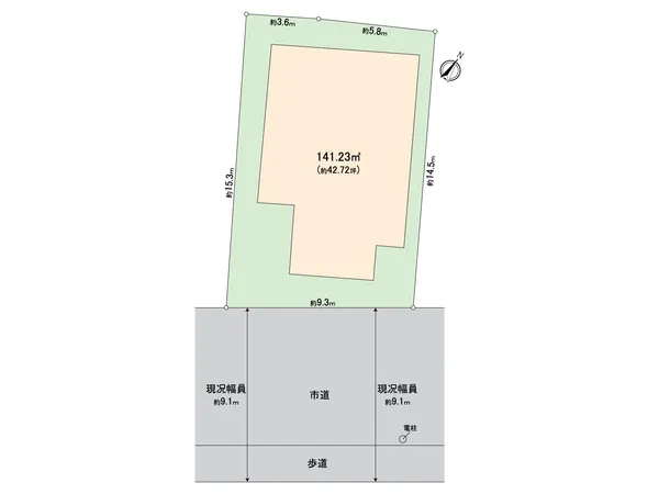 ・土地面積約141.23平米の整形地