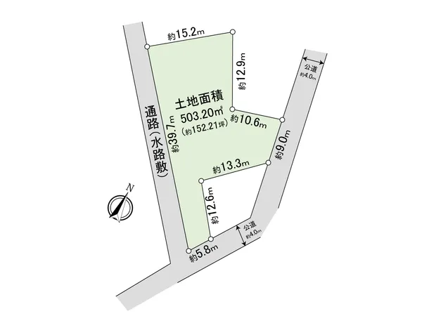 北東側:幅員 約4.0m (公道) 、 南東側:幅員 約4.0m (公道)