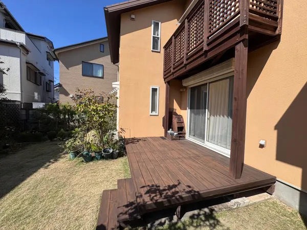 ・のんびり過ごせる温かみのあるウッドデッキ