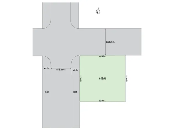西側:幅員 約11.0m (公道) 、 北側:幅員 約8.1m (公道)