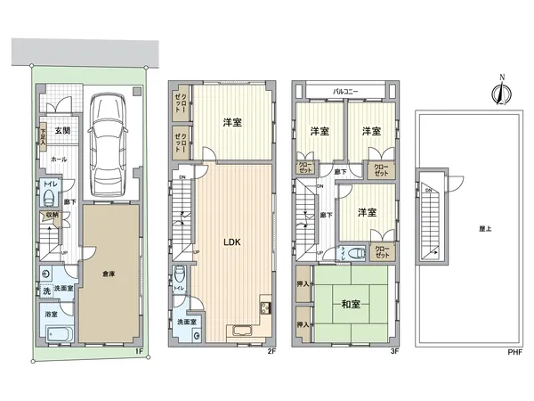 〇 3階建/5LDK+屋上+倉庫+車庫(車種制限有)