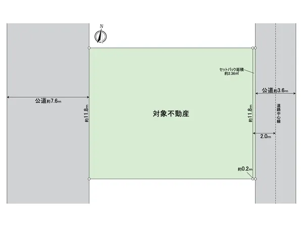 西側:幅員 約7.6m (公道) 、 東側:幅員 約3.6m (公道)