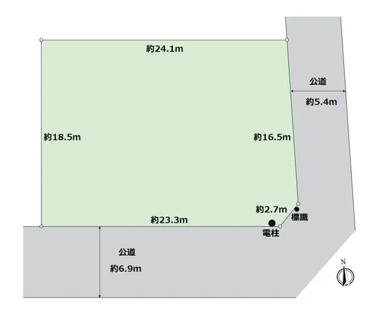 南側:幅員 約6.9m (公道) 、 東側:幅員 約5.4m (公道)