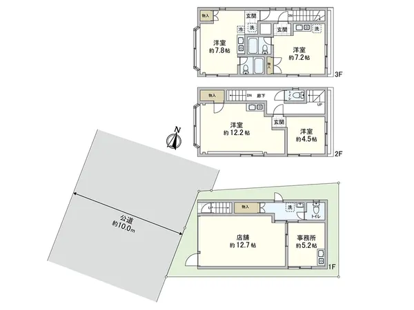 1F店舗+2F事務所+3Fワンルーム×2