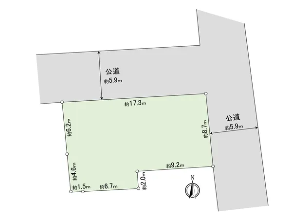 北側:幅員 約17.3m (公道) 、 東側:幅員 約8.7m (公道)