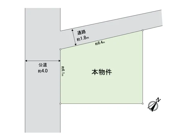 ※北西側は通路のため未接道となります。