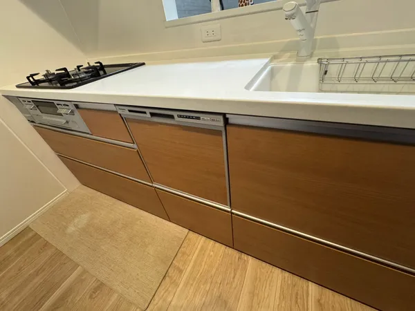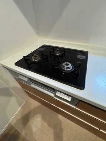 ・システムキッチン3口ガスコンロ、食洗機付き