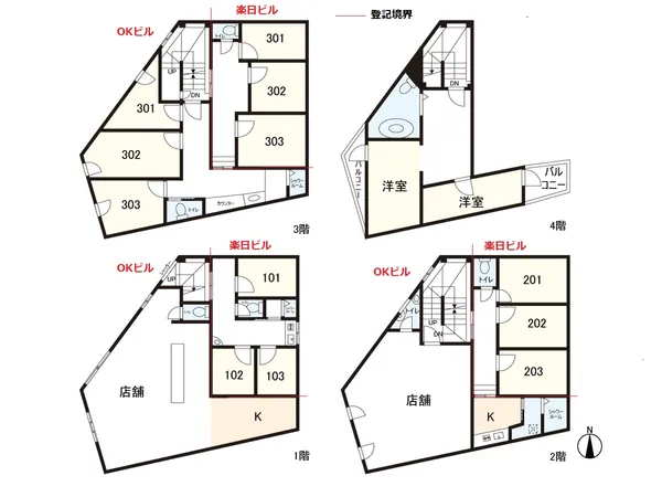 〇一部オーナー自己利用(2階店舗・4階住居)