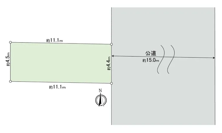 東側:幅員 約15.0m (公道)