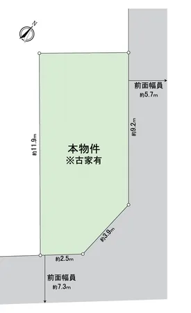 南東側:幅員 約7.3m (公道) 、 北東側:幅員 約5.7m (公道)